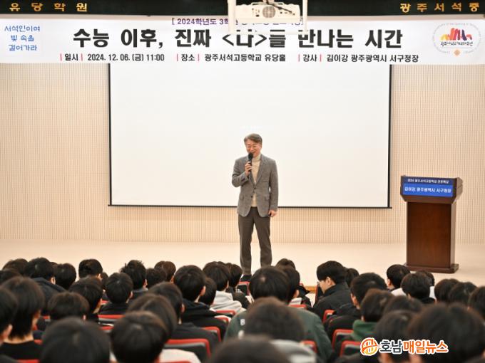 [È£³²¸ÅÀÏ´º½º = ±è¿¬Èñ ±âÀÚ] ±èÀ̰ ±¤ÁÖ ¼±¸Ã»ÀåÀº 6ÀÏ ¼¼®°íµîÇб³ À¯´çȦ¿¡¼ ¼ö´ÉÀ» ¸¶Ä£ 3Çгâ ÇлýµéÀ» ´ë»óÀ¸·Î Ưº° °¿¬À» ÁøÇàÇß´Ù.