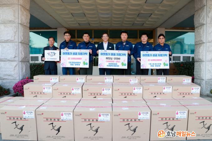 HDÇö´ë»ïÈ£»ç³»Çù·Â»çÇùÀÇȸ´Â 500¸¸¿ø »ó´çÀÇ ÈÀå½Ç ¾ÈÀü¹Ù 25¼¼Æ®¸¦, (À¯)Çö½ÂÀÌ¿£Áö(´ëÇ¥ ÇÑ¿ÁÀç)´Â 300¸¸¿øÀ», (À¯)¼Û¿î»ç¾÷(´ëÇ¥ ÇѽÂÇö)Àº 400¸¸¿øÀ», HDÇö´ë»ïÈ£¹ÝÀåÇùÀÇȸ(ȸÀå ÀÌÁ¤Àç)´Â 300¸¸¿ø »ó´çÀÇ µîÀ¯¸¦ °¢°¢ ±âºÎÇß´Ù.