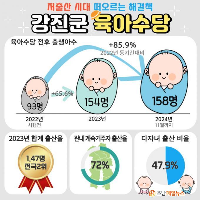84°³¿ùµ¿¾È 1Àδç 60¸¸ ¿øÀ» Áö¿ª»óǰ±ÇÀ¸·Î Áö±ÞÇÏ´Â Àü±¹ ÃÖ°í ¼öÁØÀÇ À°¾Æ¼ö´çÀº 2022³â 10¿ù Á¦µµ ½ÃÇà ÀÌÈÄ 2024³â 11¿ù ¸» ÇöÀç ´©Àû ¿ù 351¸í, 32¾ï ¿øÀÌ Áö±ÞµÅ °Áø±º Ãâ»êÀ² Áõ°¡ È¿°ú¸¦ Áõ¸íÇϰí ÀÖ´Ù.