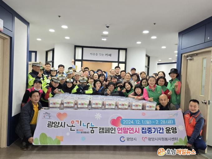 ÇÑÆí, ±¤¾ç½ÃÀÚ¿øºÀ»ç´ÜüÇùÀÇȸ¿Í Á߸¶Àå¾ÖÀκ¹Áö°üÀº ±èÀå ³ª´® Çà»ç¸¦ ÁøÇàÇÑ Áö³ 7ÀÏ ½Ã¹ÎÀÇ ¾ÈÀüÀ» Ã¥ÀÓÁö°í ÀÖ´Â ¼Ò¹æ°ú °æÂû °ø¹«¿øÀÇ ³ë°í¿¡ °¨»ç¸¦ ÀüÇϱâ À§ÇØ ±¤¾ç¼Ò¹æ¼ ¿Ü 5°÷ ¾ÈÀü¼¾ÅÍ¿Í ±¤¾ç°æÂû¼ Á߸¶Áö±¸´ë¸¦ Æ÷ÇÔÇÑ 4°÷¿¡ ±èÀå±èÄ¡¿Í ¼öÀ° µî °¨»çÀÇ ¸¶À½À» ´ãÀº µû¶æÇÑ ÇÑ ³¢¸¦ Á¦°øÇÏ´Â ¸ðµÎäñ ¹äÂ÷¸¦ ¿î¿µÇß´Ù.