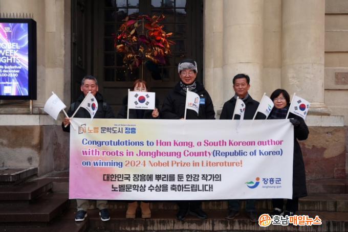 8ÀÏ ½º¿þµ§ ½ºÅåȦ¸§¿¡ µµÂøÇÑ ÃàÇÏ»çÀý´ÜÀº ³ëº§¹Ú¹°°ü ¾Õ¿¡¼ ÇѰ ÀÛ°¡ÀÇ ³ëº§¹®Çлó ¼ö»óÀ» ÃàÇÏÇÏ´Â Ç÷¡Ä«µå¸¦ °É¾î ÇöÁö ½Ã¹ÎµéÀÇ °ü½ÉÀ» ¹Þ¾Ò´Ù. 9ÀÏ¿¡´Â ÁÖ ½º¿þµ§ Çѱ¹ ´ë»ç°üÀ» ¹æ¹®ÇÏ¿© ´ë»ç¸¦ ¸é´ãÇϰí, Çѱ¹¹®È¿øÀ» ¹æ¹®ÇØ ¹®È Çù·Â ¹æ¾È µîÀ» ³íÀÇÇß´Ù.
