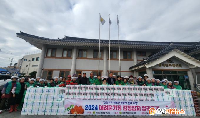 À̳¯ Çà»ç¿¡´Â »õ¸¶À» ºÎ³àȸ ȸ¿ø µî 50¿© ¸íÀÌ Âü¿©ÇÏ¿´°í, ÃÑ 800Æ÷±âÀÇ ±èÀå±èÄ¡¸¦ ´ã°¡ µ¶°Å³ëÀÎ µî Ãë¾à°èÃþ ¼¼´ë¿¡°Ô Àü´ÞÇÏ°í ¾ÈºÎ¸¦ »ìÇǸç ÀÌ¿ô»ç¶ûÀ» ½ÇõÇß´Ù.