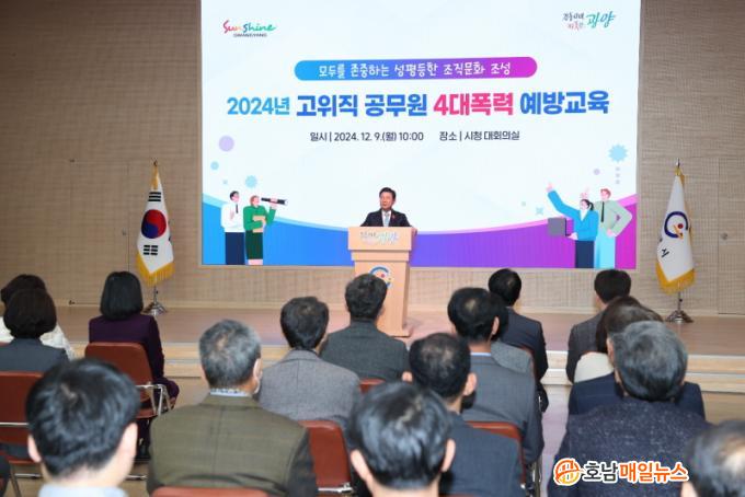 ¡®4´ëÆø·Â ¿¹¹æ±³À°¡¯Àº ¼ºÈñ·Õ․¼º¸Å¸Å․¼ºÆø·Â․°¡Á¤Æø·Â ¿¹¹æÀ» À§ÇÑ ¹ýÁ¤ Àǹ«±³À°ÀÌ´Ù. Áö³ 2021³âºÎÅÍ °íÀ§Á÷ ´ë»ó ¸ÂÃãÇü º°µµ ±³À°ÀÌ Àǹ«ÈµÆÀ¸¸ç, ±¤¾ç½Ã´Â °ü¸®ÀÚÀÇ ¿ªÇÒ°ú Ã¥ÀÓÀ» ȯ±âÇÏ°í ¾ç¼ºÆòµî ÀÇ½Ä °íÃë¿Í °ÇÀüÇÑ °øÁ÷¹®È Á¶¼ºÀ» À§ÇØ ±èÇý°æ °»ç¸¦ ÃʺùÇØ ´ë¸é ±³À°À» ÁøÇàÇß´Ù.