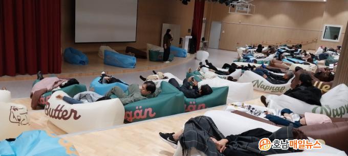 »ó´ãÄܼƮ¿¡ Âü¿©ÇÑ ½Ã¹Î 60¿© ¸íÀº ¿¡¾î¼îÆÄ¿¡¼ Æí¾ÈÇÏ°Ô ³·ÀáÀ» Áñ±â¸ç ÀçÃæÀüÇÏ´Â ½Ã°£À» °¡Á³´Ù. ÁÖÃÖ ÃøÀº ¼ö¸é Áß ½É¹Ú¼ö º¯È¸¦ ÃøÁ¤Çϰí, À̸¦ ¹ÙÅÁÀ¸·Î Âü¿©