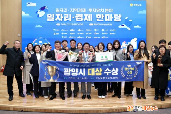 Á¤ÀÎÈ ±¤¾ç½ÃÀåÀº ¡°¿ì¸® ½Ã¿¡ ÅõÀÚÇØ Áֽбâ¾÷ÀεéÀ̾߸»·Î ±¤¾çÀÇ ÇöÀç¿Í ¹Ì·¡¸¦ ¹àÈ÷´Â ÁÖ¿ª¡±À̶ó¸ç °¨»ç¸¦ ÀüÇß´Ù. ÀÌ¾î ¡°±¤¾ç½Ã°¡ 2³â ¿¬¼ÓÀ¸·Î ÅõÀÚÀ¯Ä¡ Æò°¡ ¿ì¼ö ½Ã¡¤±º ºÎ¹® ´ë»óÀ» ¼ö»óÇÑ °ÍÀ» ¸Å¿ì ÀÚ¶û½º·´°Ô »ý°¢ÇÑ´Ù¡±¸ç ¡°±¤¾ç½Ã´Â ¾ÕÀ¸·Îµµ ±â¾÷ ÅõÀÚ È¯°æ °³¼±°ú Áö¼Ó °¡´ÉÇÑ ¼ºÀå ±â¹ÝÀ» Á¶¼ºÇϰí Áö¿ª»ê¾÷ ¹ßÀüÀ» À§ÇØ ÃÖ¼±À» ´ÙÇϰڴ١±°í µ¡ºÙ¿´´Ù.