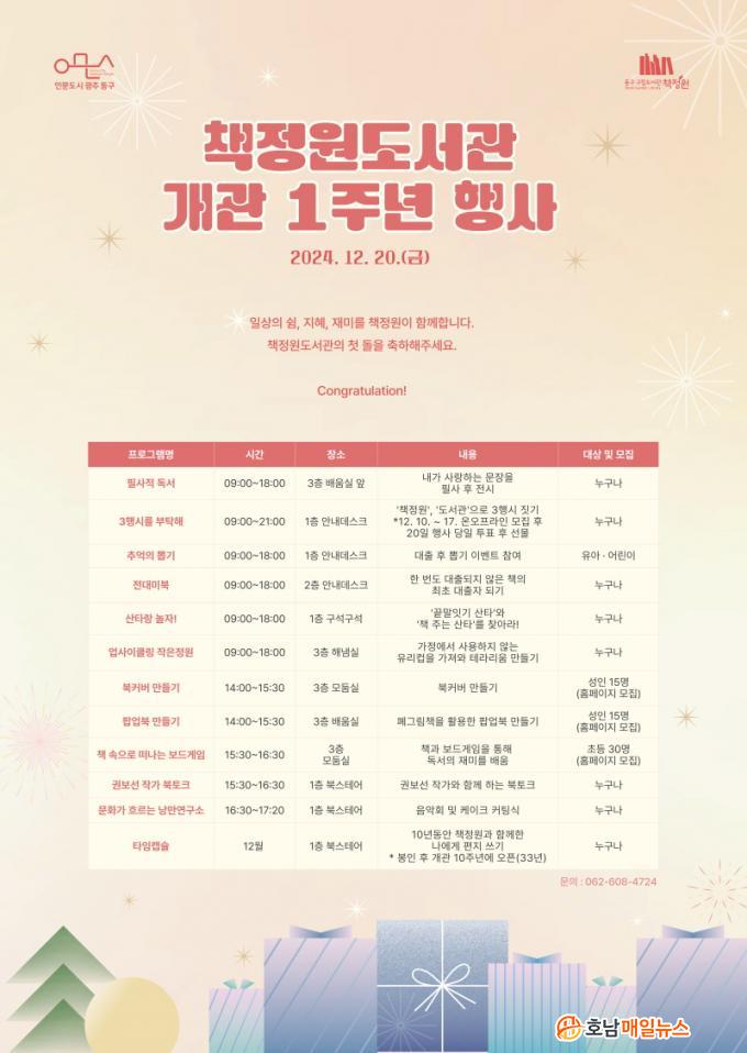 °³°ü 1ÁÖ³â Çà»ç´Â ºÏ ÅäÅ©, À½¾Çȸ, µ¶¼ À̺¥Æ® µî Áֹεé°ú ÇÔ²² ÃàÇÏÇϸç Áñ±â´Â ÀÚ¸®·Î ²Ù·ÁÁú ¿¹Á¤ÀÌ´Ù.
