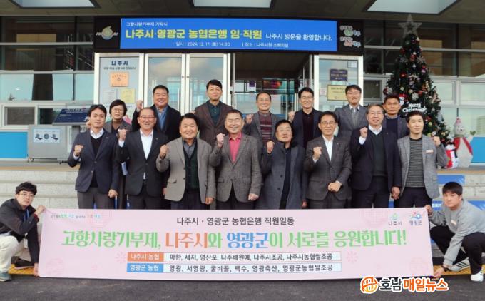 ³ªÁÖ½Ã(½ÃÀå À±º´ÅÂ)´Â ÃÖ±Ù ³ªÁÖ½Ã¿Í ¿µ±¤±º ³óÇù Á¶ÇÕÀå ¹× ÀÓÁ÷¿øµéÀÌ ÃÑ 1500¸¸¿øÀÇ °íÇâ»ç¶û±âºÎ±ÝÀ» »óÈ£ ±âŹÇß´Ù°í 19ÀÏ ¹àÇû´Ù. À̹ø ±âʽÄÀº ¾ç Áö¿ªÀÌ »óÈ£ Çù·Â°ú ¿ìÈ£¸¦ ´ÙÁö´Â »ó¡ÀûÀÎ ÀÚ¸®·Î ÁøÇàµÆ´Ù.
