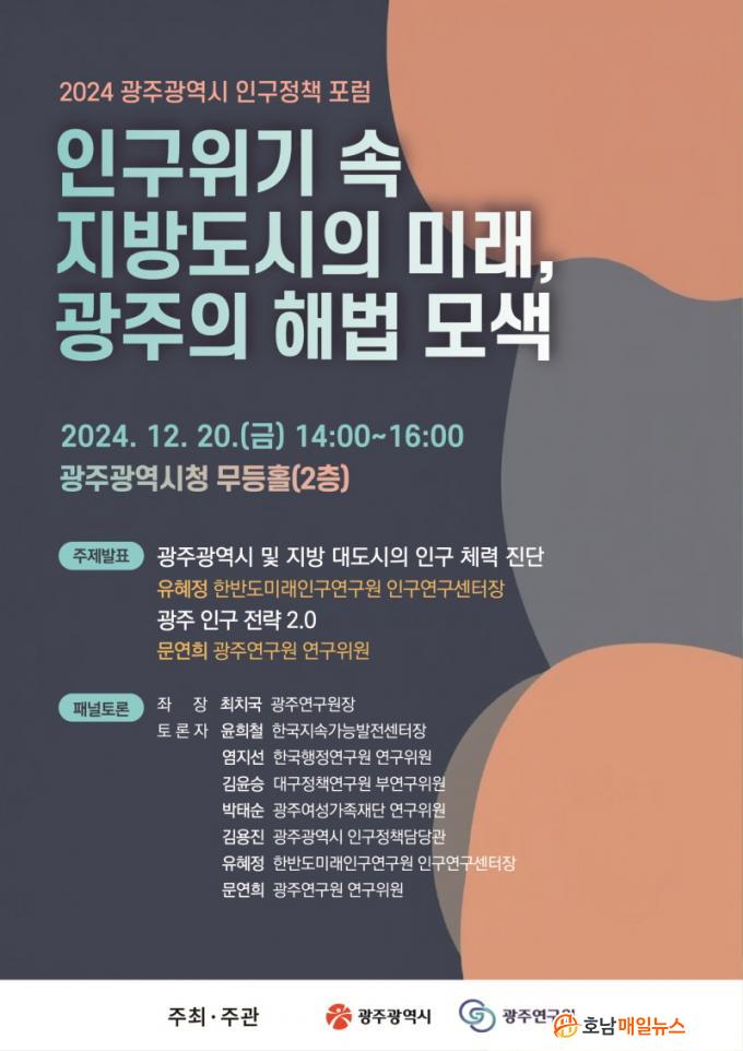 ±¤ÁÖ±¤¿ª½Ã(½ÃÀå °±âÁ¤)´Â ±¤ÁÖ¿¬±¸¿ø°ú ÇÔ²² 20ÀÏ ¿ÀÈÄ 2½Ã ½Ãû ¹«µîȦ¿¡¼ ¡®2024³â ±¤Áֽà Àα¸Á¤Ã¥ Æ÷·³¡¯À» °³ÃÖÇÑ´Ù.