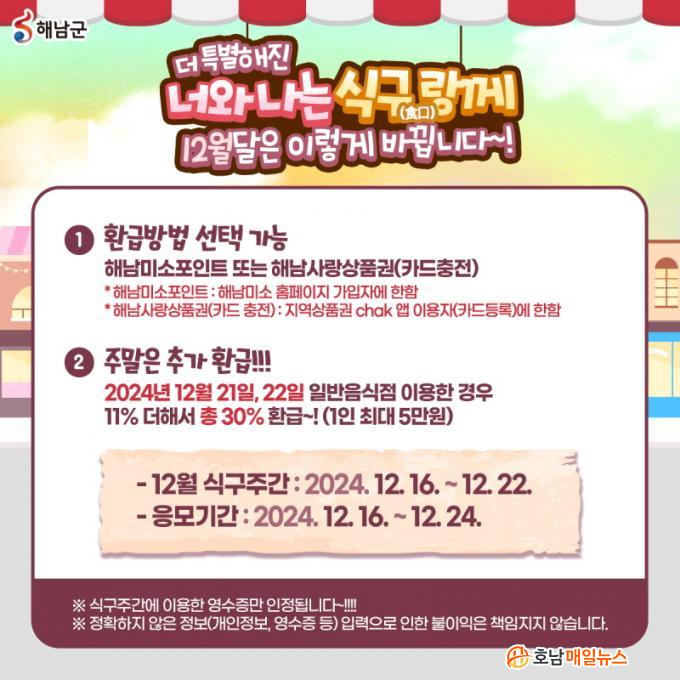 ±ºÀº ¿¬¸»À» ¸Â¾Æ 12¿ù ½Ä±¸ÁÖ°£(12.16.~12.22.)¿¡´Â ±âÁ¸´ë·Î 19%¸¦ ȯ±ÞÇϰí, 12¿ù 21~22ÀÏ, 28~29ÀÏ¿¡´Â ±âÁ¸ 19%¿¡¼ 11%¸¦ ´õÇÑ 30%±îÁö ȯ±ÞÀ» ½Ç½ÃÇÑ´Ù.