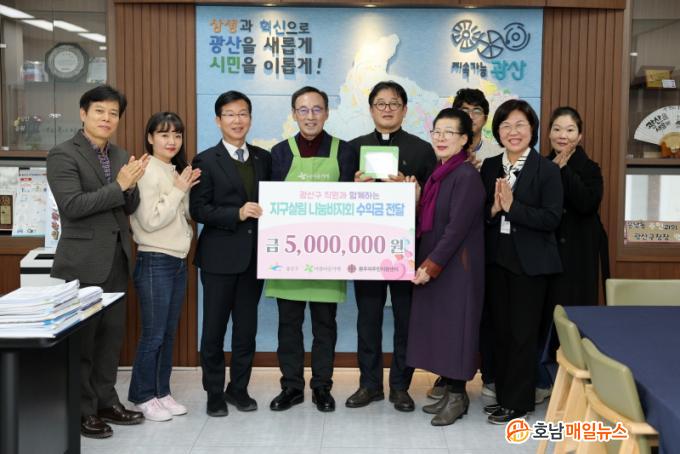 ±¤»ê±¸´Â 20ÀÏ ¾Æ¸§´Ù¿î°¡°Ô ±¤ÁÖ¸ñÆ÷º»ºÎ(º»ºÎÀå ÇÑÇý¿µ)°¡ ±¸Ã»¿¡¼ Àü´Þ½ÄÀ» °®°í ±¤ÁÖÀÌÁÖ¹ÎÁö¿ø¼¾ÅÍ(¼¾ÅÍÀå Ȳ¼ºÈ£ ½ÅºÎ)¿¡ Áö±¸»ì¸² ³ª´®¹ÙÀÚȸ ¼öÀÍ±Ý 500¸¸ ¿øÀ» Àü´ÞÇß´Ù°í ¹àÇû´Ù.