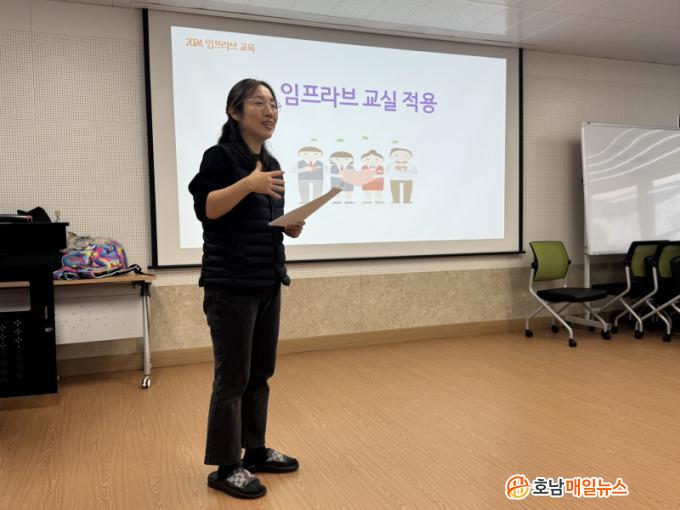 ¿¬¼ö¿¡ Âü°¡ÇÑ ÇÑ ±³»ç´Â 1Â÷ ¿¬¼ö¿¡¼ ¹è¿î ÀÓÇÁ¶óºê¸¦ Çб³¿¡¼ Ȱ¿ëÇÑ °æÇèÀ» °øÀ¯ÇÏ¸ç ¡°Àü±³»ý°ú ÇÔ²² Ȱµ¿ÇÑ °á°ú ÇлýµéÀÇ ÀÚ±âÇ¥Çö ´É·ÂÀÌ ´«¿¡ ¶ç°Ô Çâ»óµÆ°í, ¼·ÎÀÇ ÀǰßÀ» °æÃ»Çϰí Á¸ÁßÇÏ´Â ºÐÀ§±â°¡ Á¶¼ºµÆ´Ù. ¶ÇÇÑ ÇлýµéÀÌ À¯¿¬ÇÏ°Ô »ç°íÇÏ¸ç ¹è·Á½ÉÀÌ ±í¾îÁ® ÇÔ²² ¿ô´Â ½Ã°£ÀÌ ´Ã¾î³µ´Ù¡±°í ¹àÇû´Ù.