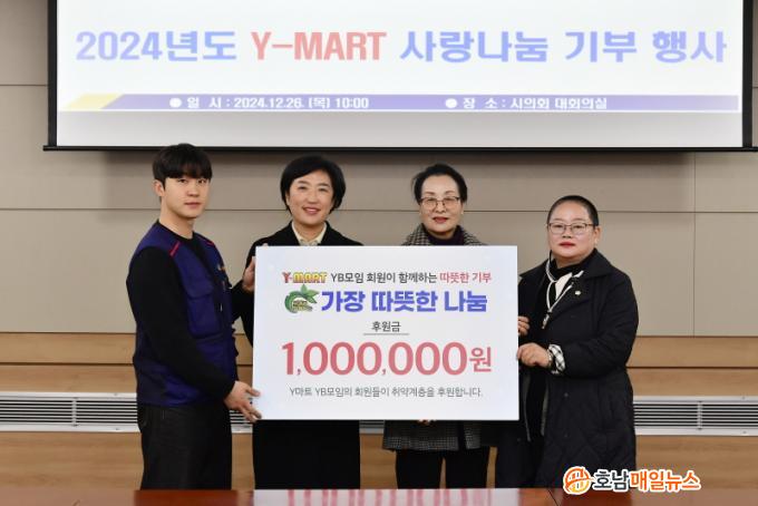 ±¤ÁÖ½ÃÀÇȸ¿¡ µû¸£¸é ¡®Y-MART YB¸ðÀÓȸ(ȸÀå ±èÂùÇõ)¡¯¿¡¼ ÁÖº¯ÀÇ ¾î·Á¿î ÀÌ¿ôµéÀÌ µû¶æÇÑ ¿¬¸»À» º¸³»±æ ±â¿øÇϸç, ½ÃÀÇȸ ¹× ÀÚÄ¡±¸ ÀÇȸ¿¡¼ ¿¬°èÇØÁØ »çȸº¹Áö´Üü¿¡ Y-MART ¸ðµç Á¡Æ÷¿¡¼ »ç¿ëÇÒ ¼ö ÀÖ´Â »óǰ±Ç 500¸¸¿ø »ó´çÀ» Àü´ÞÇß´Ù.