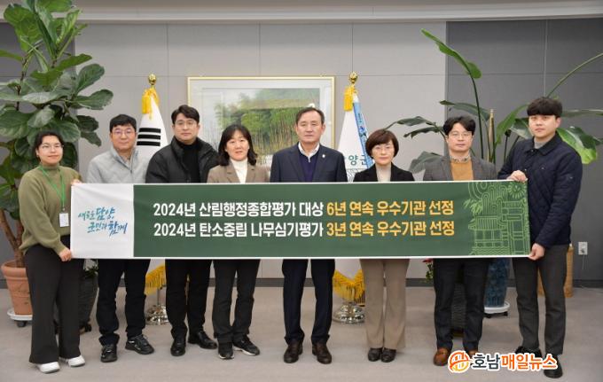 ÃÖ¿ì¼ö»óÀ» ¹ÞÀº ź¼ÒÁ߸³ ³ª¹« ½É±â Æò°¡¿¡¼´Â ¾à 120¿© ¸¸ º»ÀÇ ³ª¹«¸¦ ½É¾î ź¼ÒÁ߸³¿¡ Å©°Ô À̹ÙÁöÇßÀ» »Ó¸¸ ¾Æ´Ï¶ó ÁÖ¹Î, ´Üü¿Í ÇÔ²² »ýȰ ¼Ó ½£À» Á¶¼ºÇÑ Á¡¿¡¼ ³ôÀº Æò°¡¸¦ ¹Þ¾Æ 3³â ¿¬¼Ó ¿ì¼ö±â°ü¿¡ ¼±Á¤µÆ´Ù.