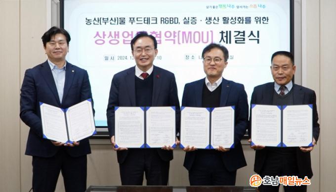 ³ªÁÖ½Ã(½ÃÀå À±º´ÅÂ)´Â Áö³ 26ÀÏ ³óÇù°æÁ¦ÁöÁÖ ³óÇù½ÄǰR&D¿¬±¸¼Ò(¼ÒÀå °´ëÀÍ), ±¤µ¿Á¦¾à(ÁÖ) õ¿¬¹°À¶ÇÕ¿¬±¸°³¹ßº»ºÎ(º»ºÎÀå ¹ÚÀϹü), Àü¶ó³²µµ ³ó¾÷±â¼ú¿ø°ú ¡®ÇªµåÅ×Å© ¿¬±¸°³¹ß ¹× ½ÇÁõ¡¤»ý»ê Ȱ¼ºÈ¸¦ À§ÇÑ ¾÷¹«Çù¾à¡¯À» ü°áÇß´Ù°í 27ÀÏ ¹àÇû´Ù.