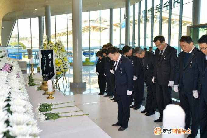 ½Ã °ü°èÀÚ´Â ¡°Èñ»ýÀÚµéÀÇ ³ÌÀ» ±â¸®°í ¾ÖµµÀÇ ¸¶À½À» Ç¥ÇÒ ¼ö ÀÖµµ·Ï ÇÕµ¿ºÐÇâ¼Ò¸¦ ¸¶·ÃÇß´Ù¡±¸ç ¡°¿©¼ö½Ã Àü °øÁ÷ÀÚµµ ±¹°¡¾Öµµ±â°£ û»ç Á¶±â °Ô¾ç°ú °ËÀº»ö ¸®º» ÆÐ¿ë µî °æ°ÇÇÏ°í ¾ö¼÷ÇÑ ÀÚ¼¼·Î Ã߸𿡠ÀÓÇÒ °Í¡±À̶ó°í ¸»Çß´Ù.