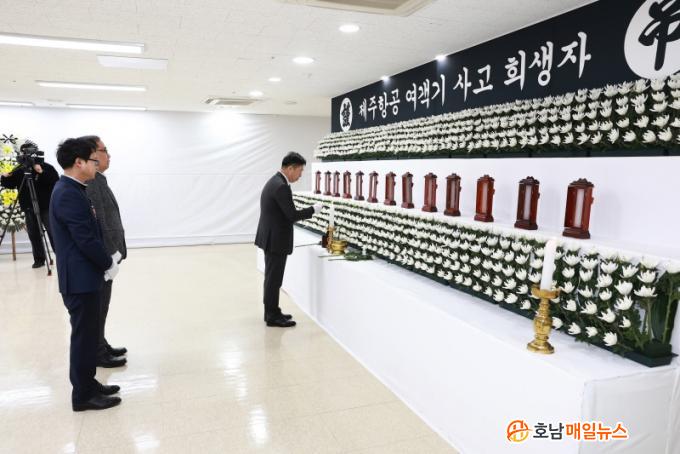 Áö³ 29ÀÏ ¹ß»ýÇÑ Á¦ÁÖÇ×°ø ¿©°´±â »ç°í·Î ȼø Áö¿ª¿¡¼´Â ±º¹Î°ú °øÁ÷ÀÚ µî ÃÑ 13¸íÀÌ »ç¸ÁÇß´Ù. ȼø±ºÀº Èñ»ýÀÚ È®ÀÎ Áï½Ã °³º° Àå·Ê Áö¿ø¿¡ Âø¼öÇϰí, 30ÀϺÎÅÍ 1¿ù 4ÀϱîÁö ±º¹ÎÁ¾ÇÕ¹®È¼¾ÅÍ 2Ãþ¿¡ ÇÕµ¿ºÐÇâ¼Ò¸¦ ¼³Ä¡ÇØ Èñ»ýÀÚ¿¡°Ô ¾Öµµ¸¦ Ç¥ÇÒ ¼ö ÀÖµµ·Ï °ø°£À» ¸¶·ÃÇß´Ù.