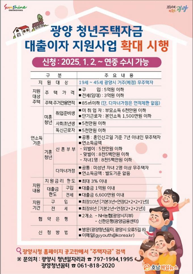¡®±¤¾ç û³âÁÖÅÃÀÚ±Ý ´ëÃâÀÌÀÚ Áö¿ø»ç¾÷¡¯°ú °ü·ÃÇÑ ÀÚ¼¼ÇÑ »çÇ×À̳ª °ü·Ã ¼·ù´Â ±¤¾ç½Ã ´©¸®Áý(ȨÆäÀÌÁö) °ø°í¶õ¿¡¼ È®ÀÎÇÒ ¼ö ÀÖÀ¸¸ç, ±Ã±ÝÇÑ Á¡Àº û³âÀÏÀÚ¸®°ú(¢Ï 061-797-1994, 1995) ¶Ç´Â ±¤¾çû³â²ÞÅÍ(¢Ï 061-818-2020)·Î ¹®ÀÇÇÏ¸é µÈ´Ù.