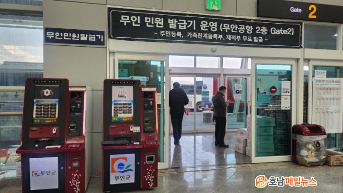 ¹«Àιοø¹ß±Þ±â´Â ¹«¾È±¹Á¦°øÇ× 2Ãþ 2¹ø°ÔÀÌÆ® ¾Õ¿¡ ÀÖÀ¸¸ç, ¹Î¿ø ¹ß±Þ ¼ö¼ö·á´Â Àç³ »óȲ Á¾·á ½Ã±îÁö Àӽà ¸éÁ¦µÈ´Ù. ÀÌ´Â ¹«¾È±ºÀÌ Æ¯º°Àç³Áö¿ªÀ¸·Î ¼±Æ÷µÊ¿¡ µû¶ó °ü·Ã¹ý¿¡ ±Ù°ÅÇØ ½ÃÇàµÆ´Ù.