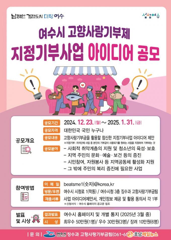 ¿©¼ö½Ã´Â Á¢¼öµÈ ¾ÆÀ̵ð¾î¸¦ ½É»ç±âÁØ¿¡ µû¶ó ÃÖÁ¾ ¼±Á¤ÇÏ°í ¿À´Â 3¿ù Áß ½Ã ´©¸®Áý¿¡ °Ô½ÃÇÒ ¿¹Á¤ÀÌ´Ù. ¶ÇÇÑ ¿ì¼ö Á¦¾ÈÀÚ¿¡°Ô´Â ÃÖ¿ì¼ö(1¸í) 50¸¸ ¿ø, ¿ì¼ö(3¸í) 30¸¸ ¿ø, Àå·Á(6¸í) 10¸¸ ¿ø »ó´çÀÇ ¿©¼ö»ç¶û»óǰ±ÇÀ» Áö±ÞÇÒ °èȹÀÌ´Ù.