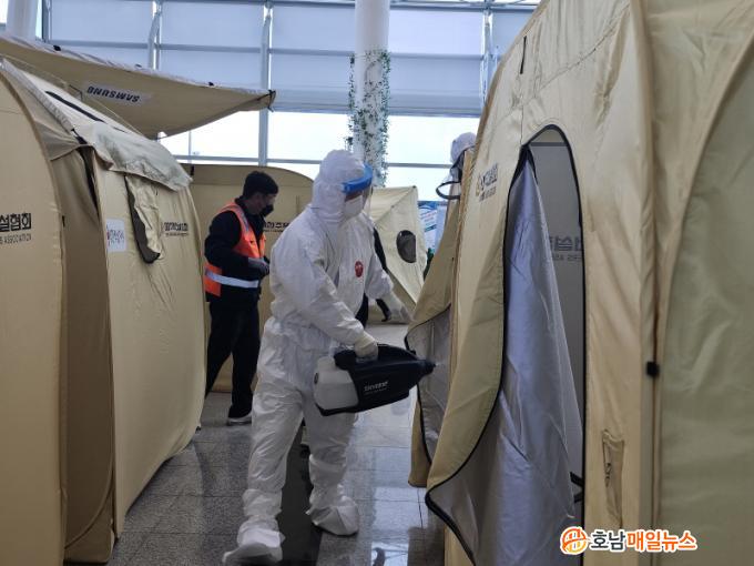6ÀÏ¿¡´Â °øÇ× ³» À¯°¡Á·ÀÌ ¸Ó¹°·¶´ø 1Ãþ Àç³±¸È£½©Å͸¦ 2ÃþÀ¸·Î ÀÌÀüÇϸé¼, °øÇ× 1Ãþ°ú 2Ãþ ´ëÇÕ½Ç, Àç³±¸È£½©ÅÍ 115°³ ±¸¿ª¿¡ ´ëÇÑ Ã¶ÀúÇÑ ¼Òµ¶ ÀÛ¾÷À» ÁøÇàÇß´Ù. ¶ÇÇÑ, ³°£ ¼ÕÀâÀÌ¿Í ÀÇÀÚ µî ´ÙÁß Á¢ÃË Ç¥¸éÀ» ¼ö½Ã·Î ¼Òµ¶Çϰí, Àü¶ó³²µµ ÀÚ¿øºÀ»ç¼¾ÅÍ¿Í °øÇ×°ø»ç¿¡ ½ºÇÁ·¹ÀÌÇü ¼Òµ¶¾à 140º´À» ¹èºÎÇϸç ÇöÀå ¹æ¿ªÀ» Áö¿øÇß´Ù.