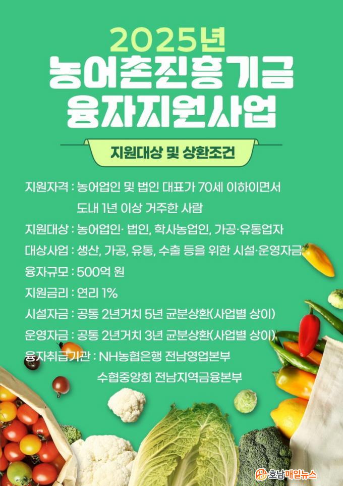Áö¿ø ´ë»óÀº Àü³²¿¡ ÁÖ¼Ò¸¦ µÐ ³ó¾î¾÷ÀÎÀ̳ª Àü³²¿¡ ÁÖµÈ »ç¹«¼Ò¸¦ µÐ ³ó¾î¾÷¹ýÀÎÀÌ´Ù. °³ÀÎÀº 1¾ï ¿ø(Çлç³ó¾÷ÀÎ 2¾ï ¿ø), ¹ýÀÎÀº 2¾ï ¿ø(°¡°ø¡¤À¯Åëȸ»ç 10¾ï ¿ø), Àú¿ÂÀúÀå°í ¼³Ä¡ ÀÚ±ÝÀº 5¾ï ¿ø Çѵµ¿¡¼ 1% ÀÌÀÚ·Î À¶ÀÚ Áö¿øÇÑ´Ù.