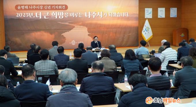 À±º´Å ³ªÁÖ½ÃÀåÀº 8ÀÏ ½Å³â ±âÀÚȸ°ßÀ» °®°í ¡°500¸¸ ³ªÁÖ°ü±¤½Ã´ë, Àα¸ 20¸¸ ±Û·Î¹ú °¼Òµµ½Ã ºñÀü ½ÇÇöÀ» À§ÇØ ´õ¿í ³ë·ÂÇϰڴ١±¸ç ¡°Â÷º°ÈµÈ Á¤Ã¥ °æÀï·ÂÀ» ¹ÙÅÁÀ¸·Î ½Ã¹ÎµéÀÌ Á÷Á¢ ü°¨ÇÒ ¼ö ÀÖ´Â ¼º°ú¸¦ ³¾ ¼ö ÀÖµµ·Ï ¸ðµç ¿ª·®À» ÁýÁßÇϰڴ١±°í »õÇØ °¢¿À¸¦ ¹àÇû´Ù.