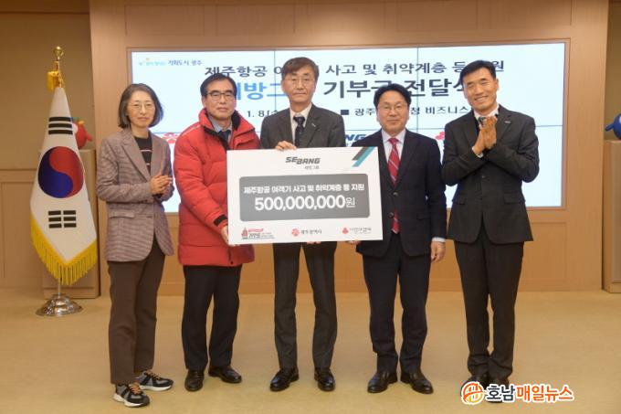 À̳¯ Àü´ÞµÈ ±âºÎ±ÝÀº »çȸº¹Áö°øµ¿¸ð±Ýȸ¸¦ ÅëÇØ Á¦ÁÖÇ×°ø ¿©°´±â Âü»ç Èñ»ýÀÚ À¯°¡Á· ¹× Ãë¾à°èÃþ µîÀÇ Áö¿ø¿¡ »ç¿ëµÉ ¿¹Á¤ÀÌ´Ù.