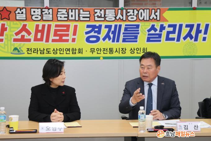 °£´ãȸ¿¡¼ ±è»ê ±º¼ö´Â ¡°¹«¾ÈÀüÅë½ÃÀåÀÌ Áß±âºÎ ÁÖ°ü ¹®È°ü±¤Çü Ư¼ºÈ½ÃÀå À°¼º»ç¾÷¿¡ ¼±Á¤µÈ °Í¿¡ ´ëÇØ °¨»ç¸¦ Ç¥Çϸç, ¹«¾ÈÀüÅë½ÃÀåÀÌ Àü³²ÀÇ ´ëÇ¥½ÃÀåÀ¸·Î µµ¾àÇÒ ¼ö ÀÖµµ·Ï Àû±Ø Áö¿øÇϰڴ١±°í ¹àÇû´Ù.