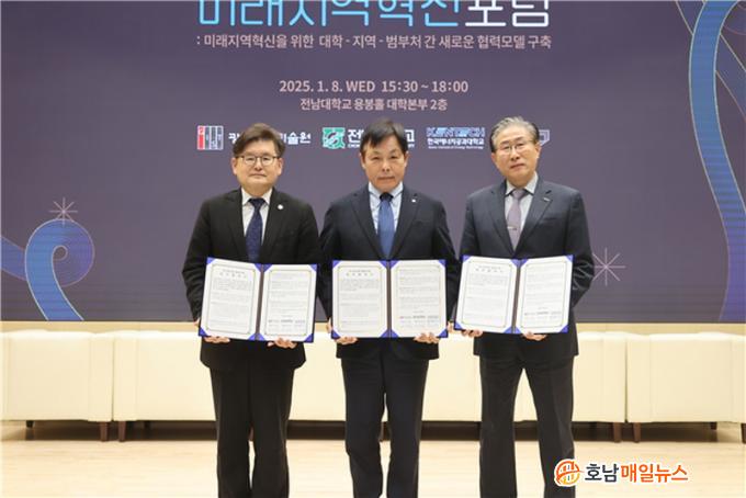 Àü³²´ë´Â 8ÀÏ ´ëÇк»ºÎ 2Ãþ ¿ëºÀȦ¿¡¼ Á¤¼ºÅà ÃÑÀå°ú ÀÓ±âö GIST ÃÑÀå, ¹ÚÁøÈ£ KENTECH ÃÑÀåÁ÷¹«´ëÇà, È«¿øÈ Çѱ¹¿¬±¸Àç´Ü ÀÌ»çÀå, ±¤ÁÖ±¤¿ª½Ã ¹× Áö¿ª Çõ½Å±â°ü °ü°èÀÚ¸¦ ºñ·ÔÇØ ±³¼ö, Çлý 150¸íÀÌ Âü¼®ÇÑ °¡¿îµ¥ ¡®¹Ì·¡Áö¿ªÇõ½ÅÀ» À§ÇÑ ´ëÇÐ-Áö¿ª-¹üºÎó °£ »õ·Î¿î Çù·Â¸ðµ¨ ±¸Ã࡯À» ÁÖÁ¦·Î ¡¸±¤ÁÖ¡¤Àü³² ¹Ì·¡Áö¿ªÇõ½Å Æ÷·³¡¹À» °³ÃÖÇß´Ù°í ¹àÇû´Ù.