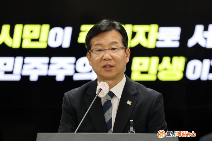 ÇÑÆí, ¹Úº´±Ô ±¤»ê±¸Ã»ÀåÀº ¡°ÁÖ±ÇÀÚÀÎ ½Ã¹ÎÀÇ ¿¬´ë¿Í Âü¿©·Î ¿î¿µÇÏ´Â ±¤»ê±¸Á¤ÀÌ ±¤ÁÖ¸¦ ³Ñ¾î ´ëÇѹα¹À» Çõ½ÅÇÏ´Â ÀÏ¿¡ Èû¾²°Ú´Ù¡±¸ç ¡°½Ã¹Î ¶æÀ¸·Î ¼³°èÇÑ ¿ÃÇØ Á¤Ã¥°ú »ç¾÷ÀÌ ¼º°øÀûÀ¸·Î ÃßÁøµÇµµ·Ï È¥½ÅÀÇ ³ë·ÂÀ» ´ÙÇϰڴ١±°í °Á¶Çß´Ù.