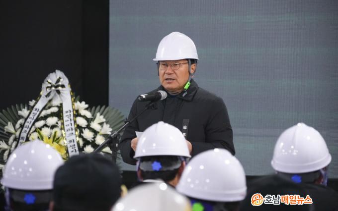 ±¤Áֽô À̳¯ ¿ÀÈÄ ¼±¸ ÈÁ¤µ¿ Çö´ë»ê¾÷°³¹ß ¾ÆÆÄÆ® ½ÅÃà°ø»ç »ç°í ÇöÀå¿¡¼ 3ÁÖ±â Ã߸ð½ÄÀÌ ¿·È´Ù°í ¹àÇû´Ù. Ã߸ð½Ä¿¡´Â Èñ»ýÀÚ À¯°¡Á·, °±âÁ¤ ½ÃÀå, ¾çºÎ³²¡¤¾Èµµ°É¡¤Á¶ÀÎö¡¤Á¤ÁØÈ£¡¤¹ÎÇü¹è ±¹È¸ÀÇ¿ø, ±èÀ̰ ¼±¸Ã»Àå, ¾ÈÆòȯ¡¤ÃÖÁöÇö¡¤¹ÚÇʼø¡¤¸íÁø¡¤È«±â¿ù¡¤¹Ú¹ÌÁ¤¡¤°¼öÈÆ¡¤½ÉöÀÇ ±¤ÁÖ½ÃÀÇ¿ø, ±¤ÁÖ¼ºÎ¼Ò¹æ¼, Çö´ë»ê¾÷°³¹ß °ü°èÀÚ µîÀÌ Âü¼®Çß´Ù.