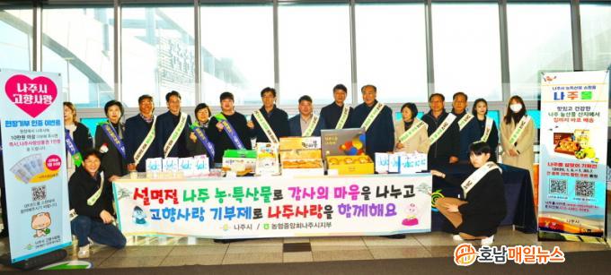 Çà»ç¿¡´Â ³ªÁֽà ±è¼º±â ³óÃà»ê½Äǰ±¹Àå, ³óÇùÁß¾Óȸ ³ªÁÖ½ÃÁöºÎ Á¦ÇØÁß ÁöºÎÀåÀ» ºñ·ÔÇÑ ½Ãû ¹× ³óÇù °ü°èÀÚ µîÀÌ Âü¼®ÇØ ³ó»ê¹° ²Ù·¯¹Ì¸¦ ¼ÛÁ¤¿ª À̿밴µé¿¡°Ô Á÷Á¢ ³ª´²ÁÖ¸ç ³ªÁÖÀÇ ¶Ù¾î³ ³ó¾÷ °æÀï·Â°ú Ư»ê¹°ÀÇ ¿ì¼ö¼ºÀ» ¾Ë·È´Ù.