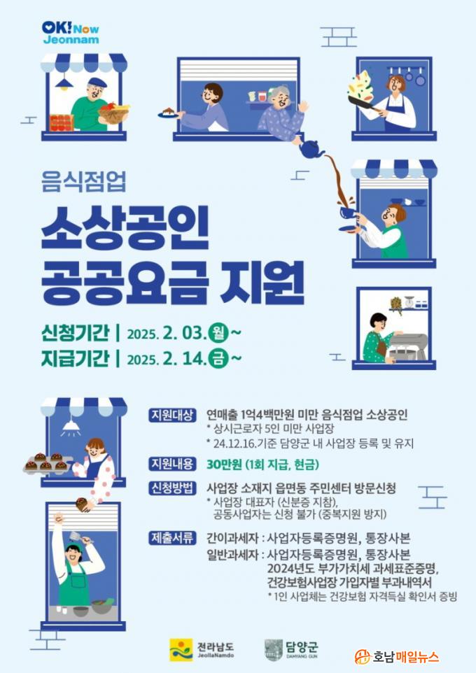Áö¿ø´ë»óÀº 2024³â 12¿ù 16ÀÏ ±âÁØ ´ã¾ç±º ³» »ç¾÷Àå µî·Ï¡¤À¯Áö ÁßÀÎ À½½ÄÁ¡¾÷ ¼Ò»ó°øÀÎÀ¸·Î, »ó½Ã ±Ù·ÎÀÚ 5ÀÎ ¹Ì¸¸, ¿¬¸ÅÃâ 1¾ï 4¹é¸¸ ¿ø ¹Ì¸¸(°£À̰ú¼¼ÀÚ ±âÁØ)ÀÎ ¾÷ü´Ù.