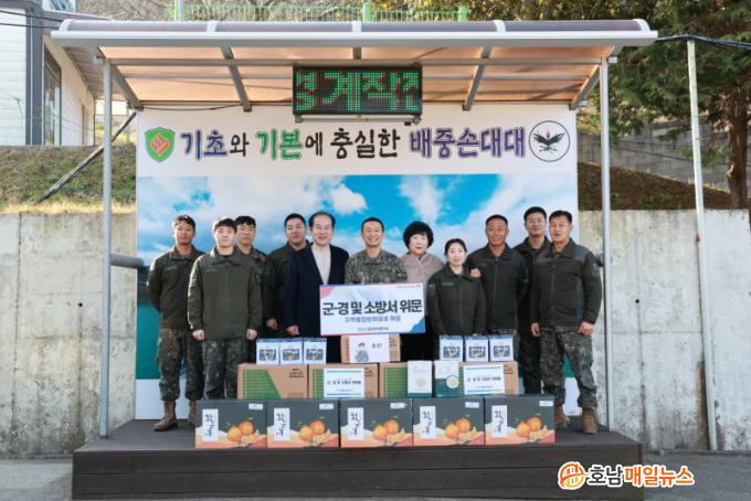 ±èÈñ¼ö Áøµµ±º¼ö´Â Áö¿ª¹æÀ§ ż¼ È®¸³°ú Ä¡¾È Áú¼ À¯Áö¸¦ À§ÇØ ÃÖ¼±À» ´ÙÇϰí ÀÖ´Â ´ë¿øµé°ú °ü°èÀÚ¸¦ °Ý·ÁÇϰí ÁøµµÆ¯»êǰ(¿ï±Ý¾à°ú, È«°Ô°£Àå µî)À» À§¹®Ç°À¸·Î Àü´ÞÇØ »ç±â¸¦ ³ô¿´´Ù.