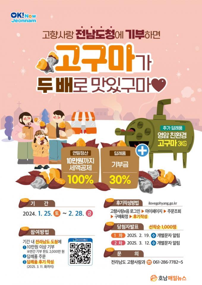 À̺¥Æ® Âü¿©´Â Àü³²µµÃ»¿¡ 10¸¸ ¿ø ÀÌ»ó ±âºÎÇÑ ÈÄ, °íÇâ»ç¶ûeÀ½¿¡¼ ´ä·ÊǰÀ» ÁÖ¹®¡¤¼ö·ÉÇÑ ´ÙÀ½ Èı⸦ ÀÛ¼ºÇϸé ÀÚµ¿À¸·Î ½ÅûµÈ´Ù.