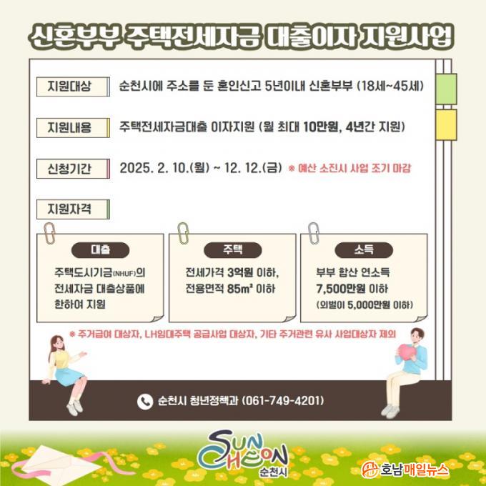 ½ÅÈ¥ºÎºÎ ÁÖÅÃÀü¼¼ÀÚ±Ý ´ëÃâÀÌÀÚ Áö¿ø»ç¾÷Àº ¼øÃµ½Ã¿¡ °ÅÁÖÇÏ´Â ¹«ÁÖÅà ½ÅÈ¥ºÎºÎ¿¡°Ô Àü¼¼ÀÚ±Ý ´ëÃâÀÌÀÚ¸¦ ¿ù 10¸¸ ¿ø¾¿ ÃÖ´ë 4³â°£ Áö¿øÇÏ´Â »ç¾÷ÀÌ´Ù.