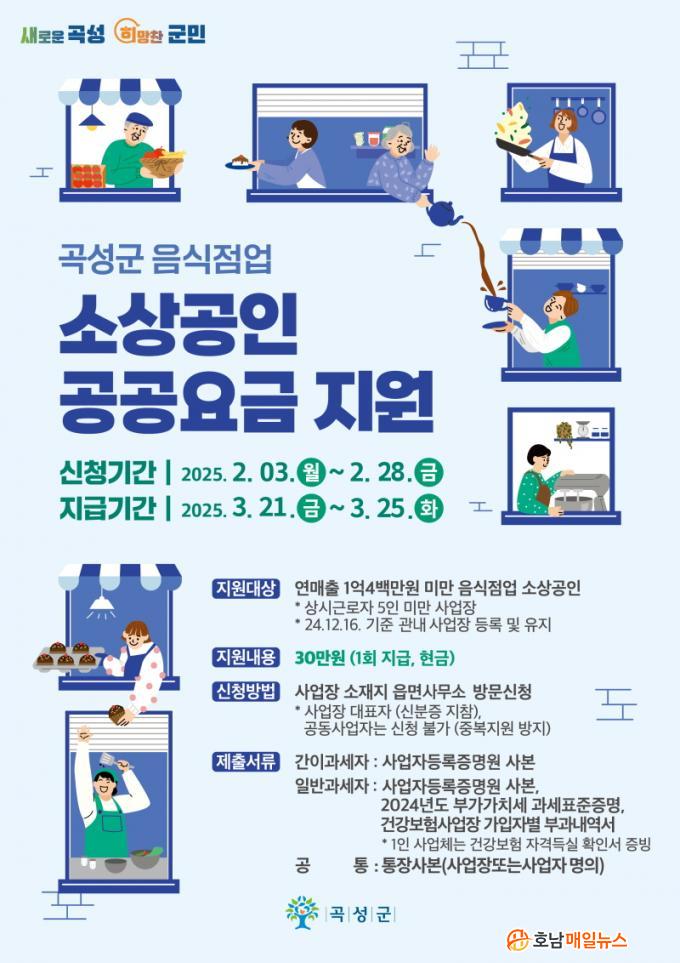 Áö¿ø ´ë»óÀº ¿¬ ¸ÅÃâ¾×ÀÌ 1¾ï 400¸¸ ¿ø ¹Ì¸¸, »ó½Ã±Ù·ÎÀÚ°¡ 5ÀÎ ¹Ì¸¸ÀÌ°í »ç¾÷ÀÚµî·ÏÁõ »ó ¾÷Ű¡ ¡®À½½ÄÁ¡¾÷¡¯ÀÎ ¼Ò»ó°øÀÎÀÌ´Ù. 2024³â 12¿ù 16ÀÏÀ» ±âÁØÀ¸·Î °î¼º±º ³» »ç¾÷ÀåÀ» µî·ÏÇØ À¯Áö ÁßÀ̾î¾ß ÇÑ´Ù.