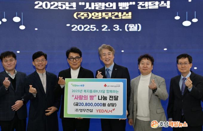 [È£³²¸ÅÀÏ´º½º = ±è¿¬Èñ ±âÀÚ] ±¤ÁÖ ¼­±¸(±¸Ã»Àå ±èÀ̰­)´Â 3ÀÏ ¢ß¿µ¹«°Ç¼³(ȸÀå ¹ÚÀçÈ«)·ÎºÎÅÍ ¾î·Á¿î ÀÌ¿ôÀ» À§ÇÑ 2080¸¸¿ø »ó´çÀÇ ¡®»ç¶ûÀÇ »§¡¯À» Àü´Þ¹Þ°í °¨»çÀÇ ¸¶À½À» ÀüÇß´Ù.