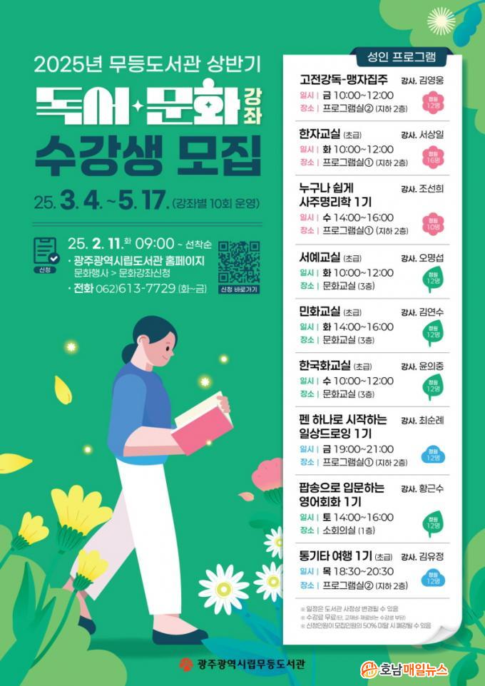 »ó¹Ý±â µ¶¼¹®È °ÁÂÀÇ ¼ö°·á´Â ¹«·áÀÌÁö¸¸ Àç·áºñ¿Í ±³Àçºñ´Â ¼ö°»ýÀÌ ºÎ´ãÇÑ´Ù. °Á ¼ö°À» Èñ¸ÁÇÏ´Â ½Ã¹ÎÀº 11ÀϺÎÅÍ ±¤ÁÖ±¤¿ª½Ã¸³µµ¼°ü ´©¸®Áý(ȨÆäÀÌÁö)ÀÇ ¡®¹®È°Á½Åû¡¯¶õÀ» ÅëÇØ Á¢¼öÇÒ ¼ö ÀÖ´Ù.