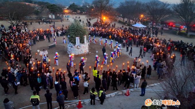 ȶºÒµé°í ¼º°ûµ¹±â´Â ´çÀÏ ¼±Âø¼øÀ¸·Î ¸ðÁýµÈ 300¿© ¸íÀÇ °ü¶÷°´ÀÌ È¶ºÒÀ» µé°í ¼º°ûÀ» µ¹¸ç ÀüÅëÀÇ ¸ÆÀ» ÇÔ²² ´À³¤ ÈÄ ³îÀ̸¶´ç¿¡ ¼³Ä¡µÈ ´ÞÁý ¾ÕÀ¸·Î Áý°áÇÏ¸ç ¸¶¹«¸®µÈ´Ù. ÀÌÈÄ ÁøÇàµÇ´Â ´ÞÁýÅ¿ì±â Çà»ç¿¡¼´Â ¼øÃµ ³«¾ÈÀ¾¼º°ú »Ñ¸®±íÀº³ª¹«¹Ú¹°°üÀÇ ¹æ¹®°´µéÀÌ ¾´ ¼Ò¿øÁö¸¦ Å¿ì¸ç ¸ðµÎÀÇ ¼Ò¿ø°ú dz¿ä¸¦ ±â¿øÇÑ´Ù.