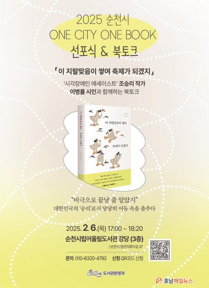 ½Ã °ü°èÀÚ´Â ¡°À̹ø ¼±Æ÷½ÄÀ» ½ÃÀÛÀ¸·Î µ¿¾Æ¸® ¸±·¹ÀÌ µ¶¼, µ¶¼Åä·Ð, ÀúÀÚ ÃÊû °¿¬ µî ´Ù¾çÇÑ 2025 ONE CITY ONE BOOK ÇÁ·Î±×·¥ÀÌ ÁøÇàµÉ ¿¹Á¤ÀÌ´Ù¡±¸ç ¡°¿Ã ÇÑ ÇØ µ¿¾È ¼øÃµ½Ã¹ÎÀÌ ÇÔ²² ÀÐ°í »ý°¢À» ³ª´©´Â ¹®Èµµ½Ã ¼øÃµÀÌ µÇ±â¸¦ Èñ¸ÁÇÑ´Ù¡±°í ¸»Çß´Ù.
