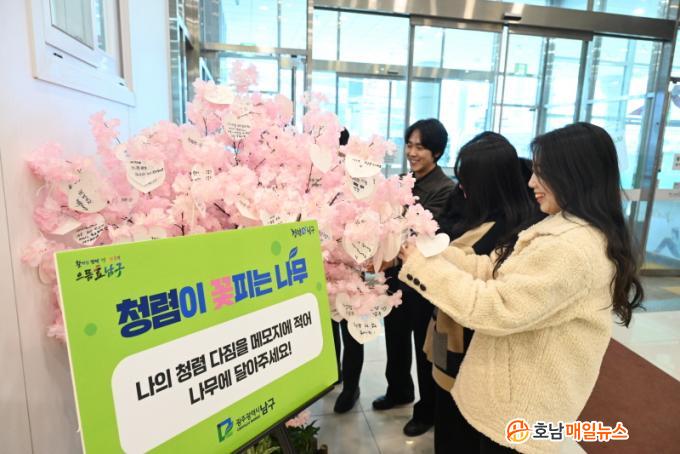 6ÀÏ ³²±¸¿¡ µû¸£¸é ±¸Ã» °øÁ÷ÀÚµéÀº ÃÖ±Ù Á¾ÇÕû»ç Á¤¹® ÃâÀÔ¹® Àαٿ¡ ºÐÈ«ºû »öäÀÇ Ã»·Å ³ª¹«¸¦ ½É¾ú´Ù. °øÁ÷»çȸ»Ó¸¸ ¾Æ´Ï¶ó ³²±¸ Áö¿ª»çȸ Àü¹Ý¿¡ û·ÅÇÑ ¹®È¸¦ È®»êÇϱâ À§ÇÔÀÌ´Ù.