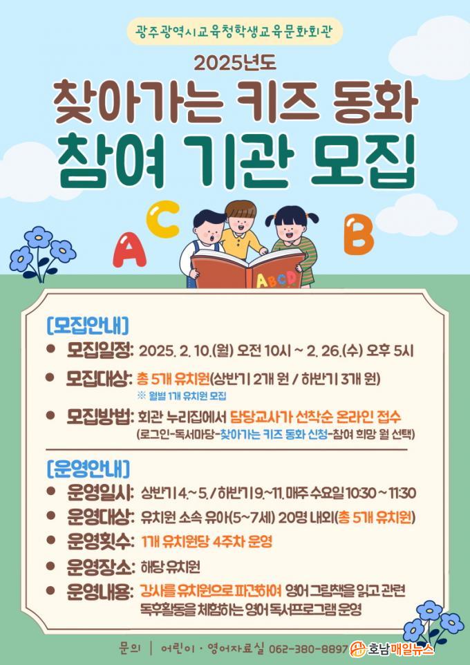 ¡®Ã£¾Æ°¡´Â ŰÁî µ¿È¡¯´Â Àü¹® °»ç°¡ À¯Ä¡¿øÀ¸·Î ã¾Æ°¡ 4ÁÖ°£ ¡ã¿µ¾î ±¸¿¬µ¿È Àб⠡㿵¾î ³ë·¡ ºÎ¸£±â ¡ãÄûÁî ¸ÂÃ߱⠵î ÇÁ·Î±×·¥À» ÁøÇàÇÑ´Ù. »ó¹Ý±â(4~5¿ù) 2°³, ÇϹݱâ(9~11¿ù) 3°³ µî ÃÑ 5°³ À¯Ä¡¿øÀ» ´ë»óÀ¸·Î ¿î¿µÇÑ´Ù.