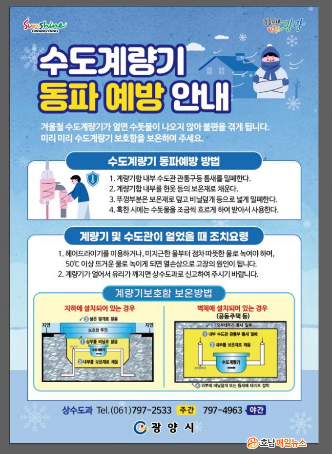 »ó¼öµµ µ¿ÆÄ ¹× ´©¼ö »ç°í·Î ÀÎÇÑ ºÒÆí »çÇ×Àº ±¤¾ç½Ã »ó¼öµµ°ú(ÁÖ°£ ¢Ï797-2533, 3585 / ¾ß°£ ¢Ï797-4963)·Î ½Å°íÇÏ¸é µÈ´Ù. ´©¼ö »ç°í ½Å°í Á¢¼öⱸ´Â 3¿ù 10ÀϱîÁö ¿î¿µµÇ¸ç, ±¤¾ç½Ã´Â ÇÑÆÄ°¡ ³¡³¯ ¶§±îÁö µ¿Àý±â ºñ»ó±Ù¹« ü°è¸¦ À¯ÁöÇÒ °èȹÀÌ´Ù.