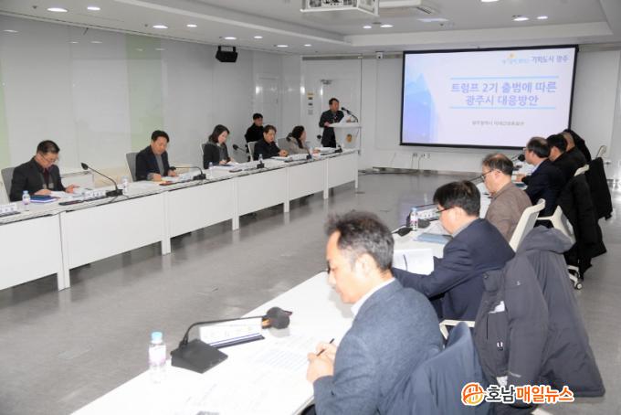 ±¤ÁÖ±¤¿ª½Ã´Â 5ÀÏ ¿ÀÈÄ ½Ãû ¼ÒȸÀǽǿ¡¼ °±âÁ¤ ½ÃÀå ÁÖÀç·Î ¡®Æ®·³ÇÁ 2±â °ü¼¼Á¤Ã¥ ´ëÀÀ ±ä±ÞȸÀÇ¡¯¸¦ °³ÃÖÇß´Ù.