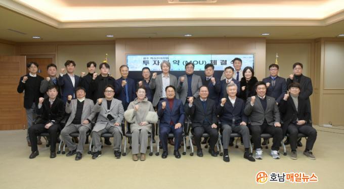 ±¤ÁÖ½Ã¿Í ±¤ÁÖ°æÁ¦ÀÚÀ¯±¸¿ªÃ»ÀÌ °øµ¿ °³ÃÖÇÑ À̳¯ Çù¾à½Ä¿¡´Â °±âÁ¤ ½ÃÀåÀ» ºñ·ÔÇØ ¼±¼®±â ±¤ÁÖ°æÁ¦ÀÚÀ¯±¸¿ªÃ»Àå, ÃÖÅÂÁ¶ ÀΰøÁö´É»ê¾÷½ÇÀå, ÅõÀÚ±â¾÷ ´ëÇ¥ µîÀÌ Âü¼®Çß´Ù. ÅõÀÚÇù¾à ±â¾÷Àº ±¹³» 19°³ »ç(±¤ÁÖ 13°³, ŸÁö¿ª 6°³)¿Í ±¹¿Ü 2°³ »ç(¹Ì±¹ 1°³, ±¹³»º¹±Í 1°³) µî ÃÑ 21°³ »ç´Ù.