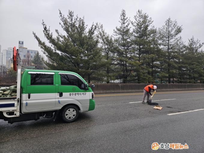 ¼±¸´Â ÇØºù±â¸¦ ¾ÕµÎ°í Æ÷ƮȦ·Î ÀÎÇÑ ¾ÈÀü»ç°í ¹× Â÷·® ÆÄ¼ÕÀ» ÃÖ¼ÒÈÇϱâ À§ÇØ ÀÀ±Þ Á¤ºñ¹ÝÀ» 3°³Á¶ 7¸íÀ¸·Î ±¸¼ºÇß´Ù. ÀÀ±Þ Á¤ºñ¹ÝÀº µµ·Î ³» Æ÷ƮȦ»Ó¸¸ ¾Æ´Ï¶ó Áö¹ÝħÇÏ µî µµ·Î½Ã¼³¹° ÈÑ¼Õ ¿©ºÎ¸¦ È®ÀÎÇϰí Áï½Ã º¸¼öÇÒ ¿¹Á¤ÀÌ´Ù. ¶ÇÇÑ Æ÷ƮȦÀÌ ¹ß»ýÀÌ Àæ°í ¸¹Àº ±¸°£Àº º°µµ ¿¹»êÀ» È®º¸ÇØ ÀçÆ÷ÀåÀ» ½Ç½ÃÇÒ °èȹÀÌ´Ù.