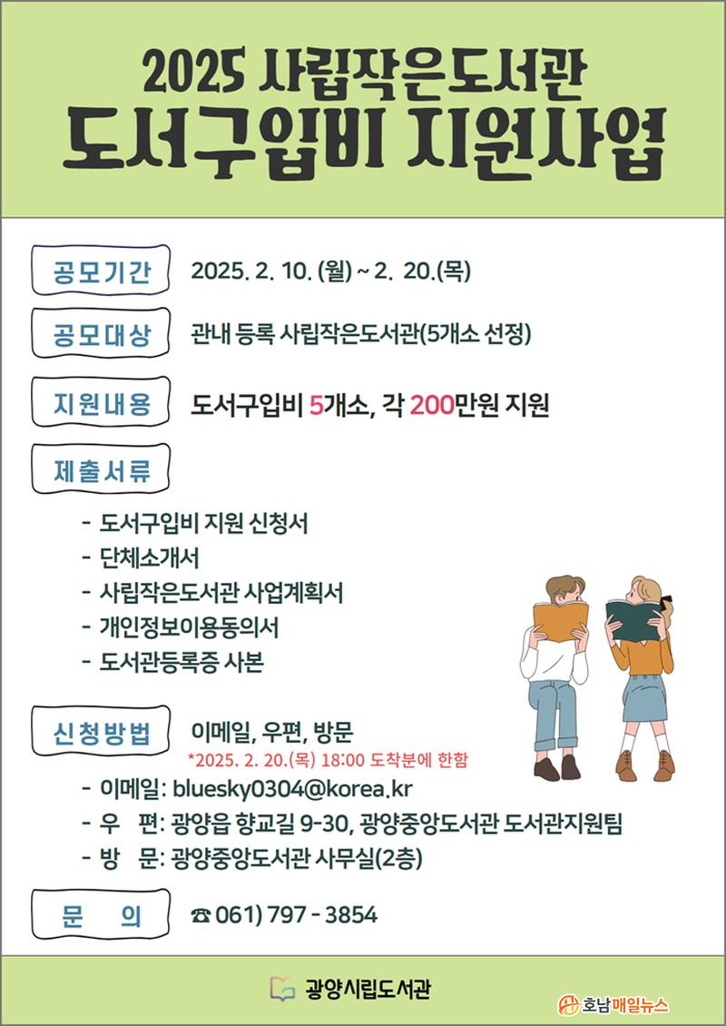 °ø¸ð±â°£Àº 2¿ù 10ÀϺÎÅÍ ¿À´Â 2¿ù 20ÀϱîÁö´Ù. Âü¿©¸¦ Èñ¸ÁÇÏ´Â »ç¸³ÀÛÀºµµ¼°üÀº ±¤¾ç½Ãû ¶Ç´Â ±¤¾ç½Ã¸³µµ¼°ü ´©¸®Áý °øÁö»çÇ׿¡¼ ½Åû¼·ù¸¦ ³»·Á¹Þ¾Æ ÀÛ¼ºÇÑ ÈÄ, ±¤¾çÁß¾Óµµ¼°üÀ» ¹æ¹®ÇØ Á¢¼öÇϰųª À̸ÞÀÏ(bluesky0304@korea.kr) ¶Ç´Â ¿ìÆí(±¤¾ç½Ã ±¤¾çÀ¾ Çâ±³±æ 9-30, ±¤¾çÁß¾Óµµ¼°ü µµ¼°üÁö¿øÆÀ)À¸·Î Á¦ÃâÇÏ¸é µÈ´Ù.