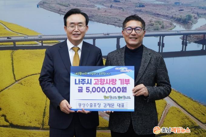 À±º´Å ³ªÁÖ½ÃÀåÀº ¡°±¤¼º¼öÃâÆ÷Àå(ÁÖ) ±èÀç¹® ´ëÇ¥´ÔÀÇ ²ÙÁØÇÑ °ü½É°ú ±âºÎ¿¡ ±íÀº °¨»ç¸¦ µå¸°´Ù¡±¸ç ¡°¾ÕÀ¸·Îµµ ±â¾÷°ú Áö¿ª»çȸ°¡ ÇÔ²² °øÁ¸Çϴ ȯ°æÀ» ¸¸µé¾î ³ª°¡µµ·Ï ÃÖ¼±À» ´ÙÇϰڴ١±°í ÀüÇß´Ù.