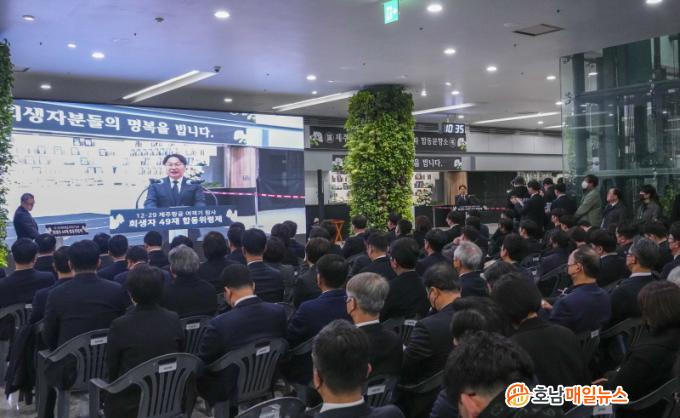 ° ½ÃÀåÀº À̳¯ ¹«¾È±¹Á¦°øÇ× ºÐÇâ¼Ò¿¡¼ ¿¸° ¡®12¡¤29 Á¦ÁÖÇ×°ø ¿©°´±â Âü»ç Èñ»ýÀÚ 49Àç ÇÕµ¿À§·ÉÁ¦¡¯¿¡ Âü¼®ÇØ ¡°ºÎ¸ð, ÀÚ½Ä, µ¿·á, Ä£±¸¿´´ø ´ç½ÅµéÀÌ ¿ì¸® °ç¿¡ ¾ø´Ù. ¿ì¸®´Â ¿©ÀüÈ÷ ¼·Î ½½ÆÛÇϰí ÇÔ²² À§·ÎÇϰí ÀÖ´Ù¡±¸ç À̰°ÀÌ ¸»Çß´Ù.